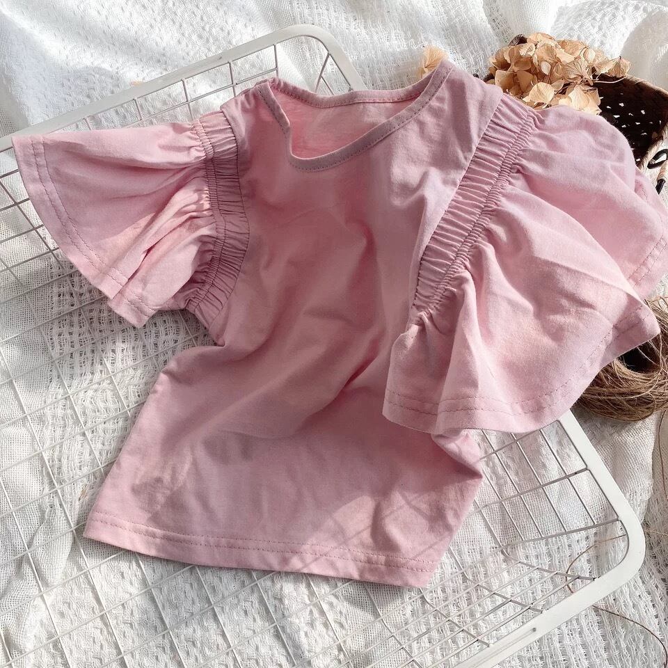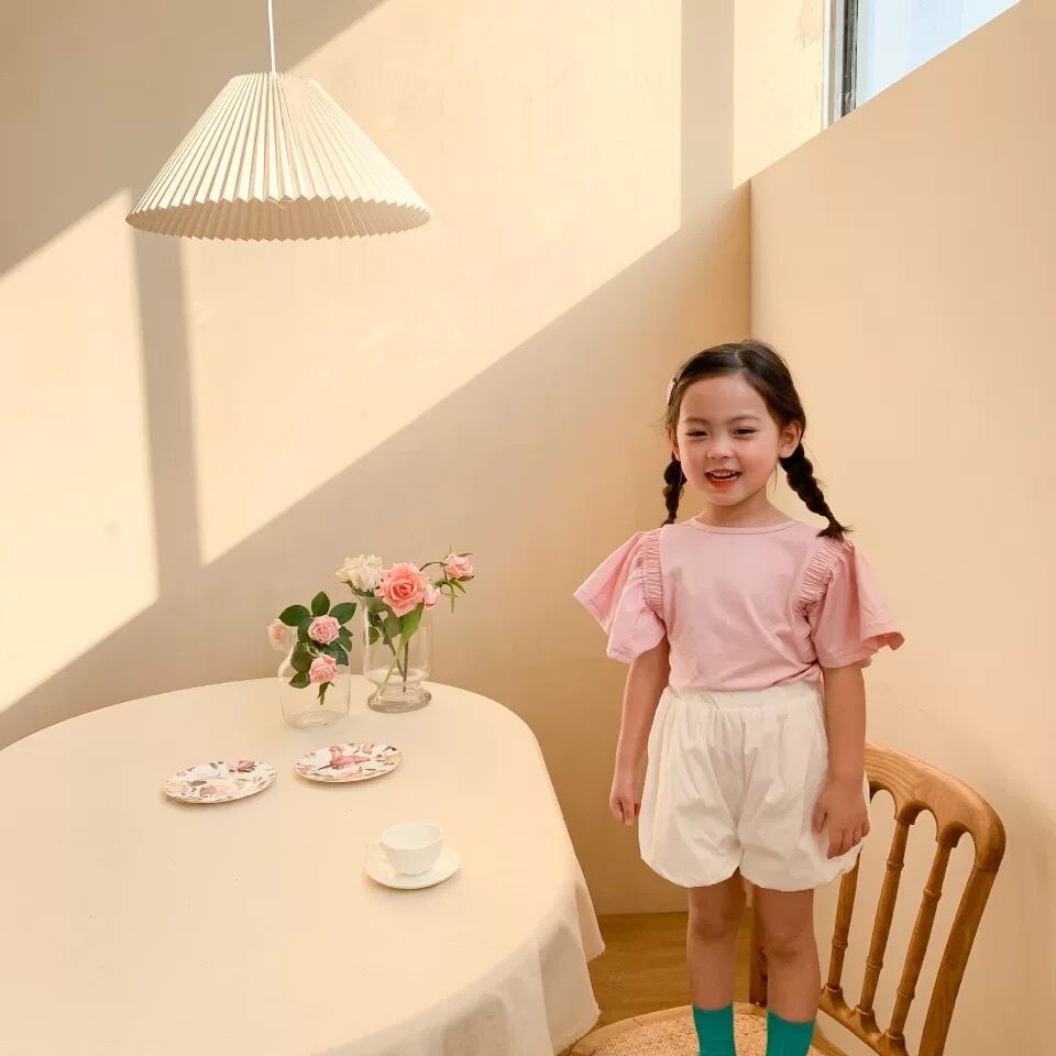 袖フリルがポイントの1枚あると絶対使えるガールズTシャツ