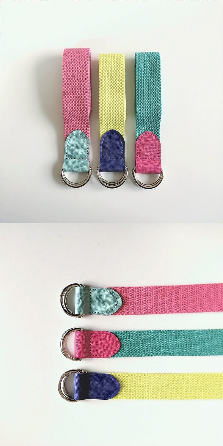 通して引っ張るだけの使いやすいDカンスタイルでウエストに合わせた微調整も簡単にできます