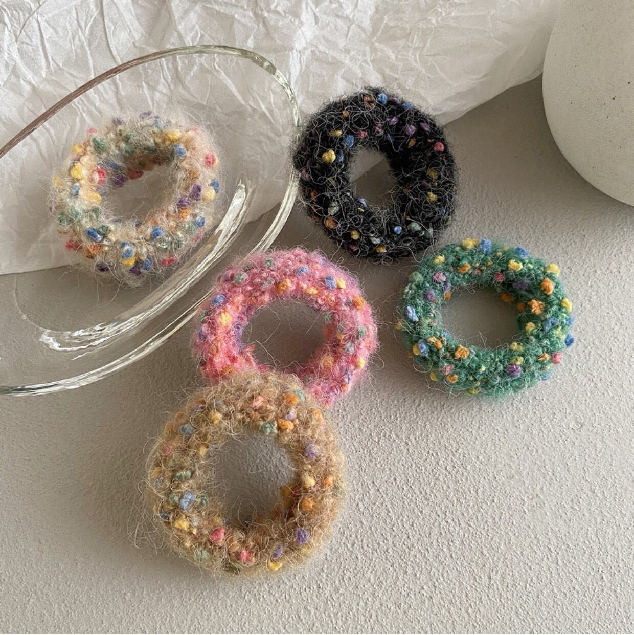 もこもこ冬らしくて可愛いネップヤーン ヘアゴムです!しっかり結べるので様々なヘアスタイルに使えるます!