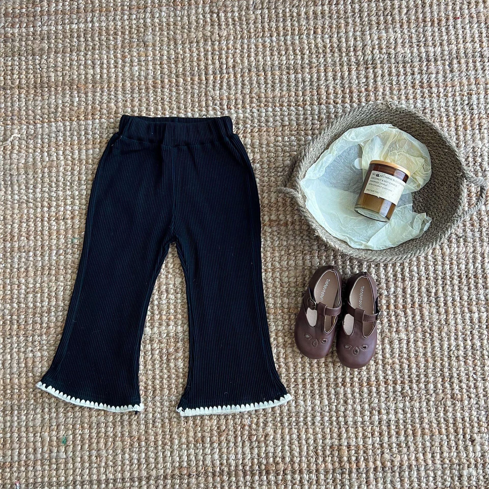 配色リブフレアパンツです。配色ステッチがアクセントになり、ロングシーズン着用出来ます。
