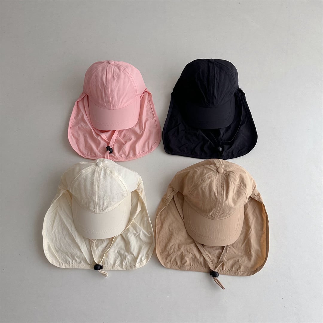 ネックカバー紐付きで、日差しをガードしてくれます、しゃかしゃかの速乾素材なので、海や川遊びにも良い◎